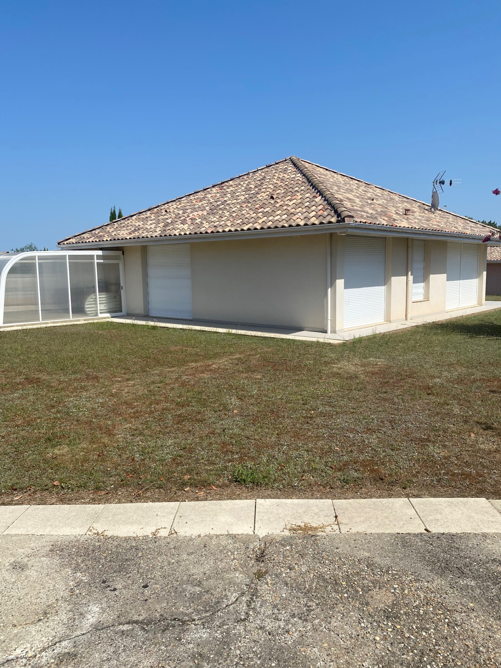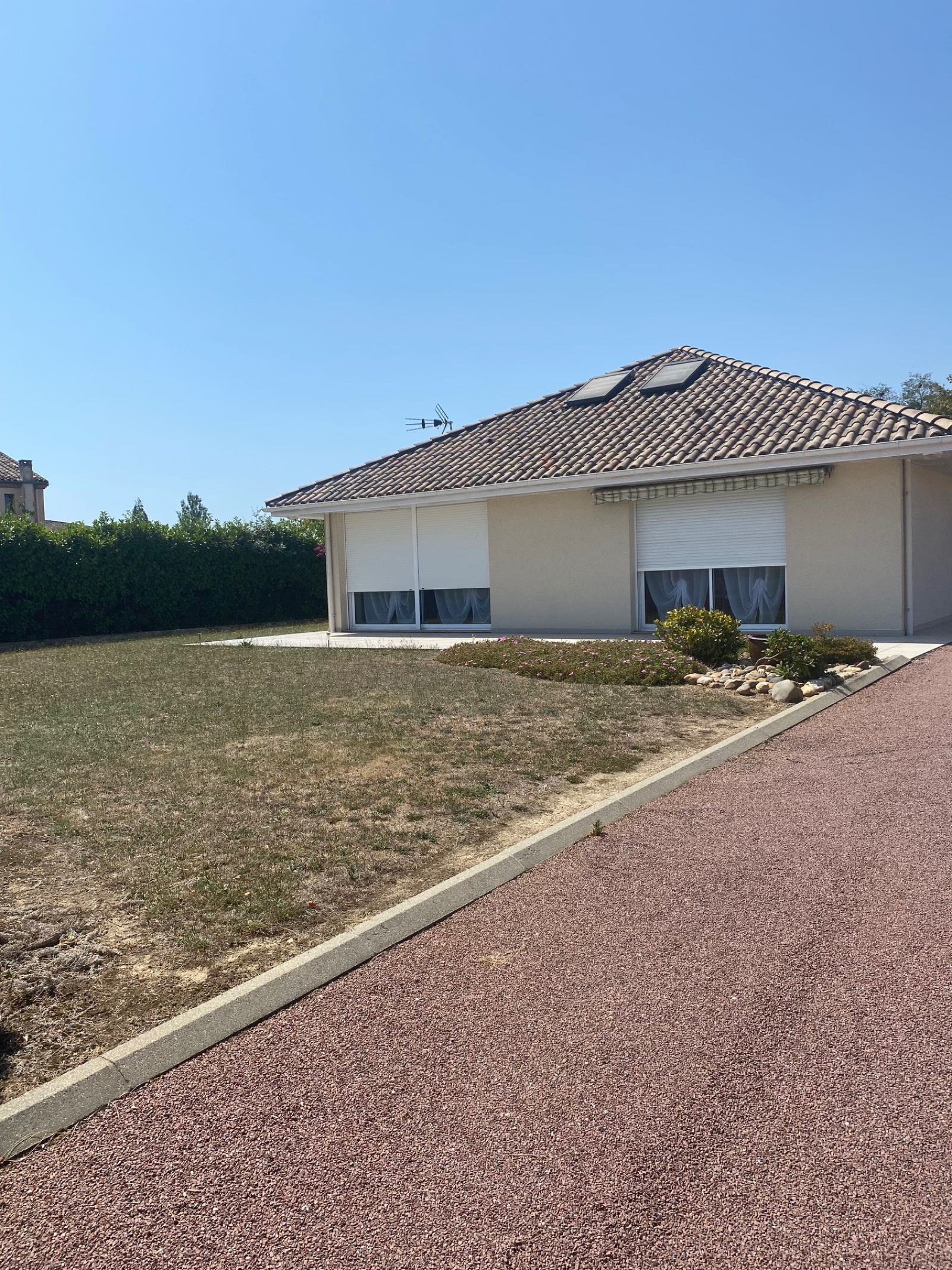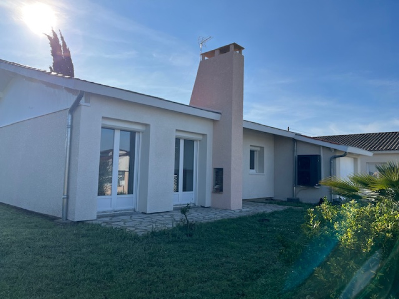 Beaupuy, belle villa T3 avec jardin clos autour, comprenant : séjour ouvert sur cuisine équipée (rangements, plaque de cuisson, hotte aspirante, four, réfrigérateur), deux chambres avec placards, salle de bains+ douche, wc, mezzanine, grand cellier/buanderie, abri voiture - Chauffage au sol (électrique) + climatisation, double vitrage, volets roulants électriques... - Disponible - Loyer mensuel hors charges : 760€ + 10€ charges (taxe ordures ménagères) - Dépôt de garantie : 760€