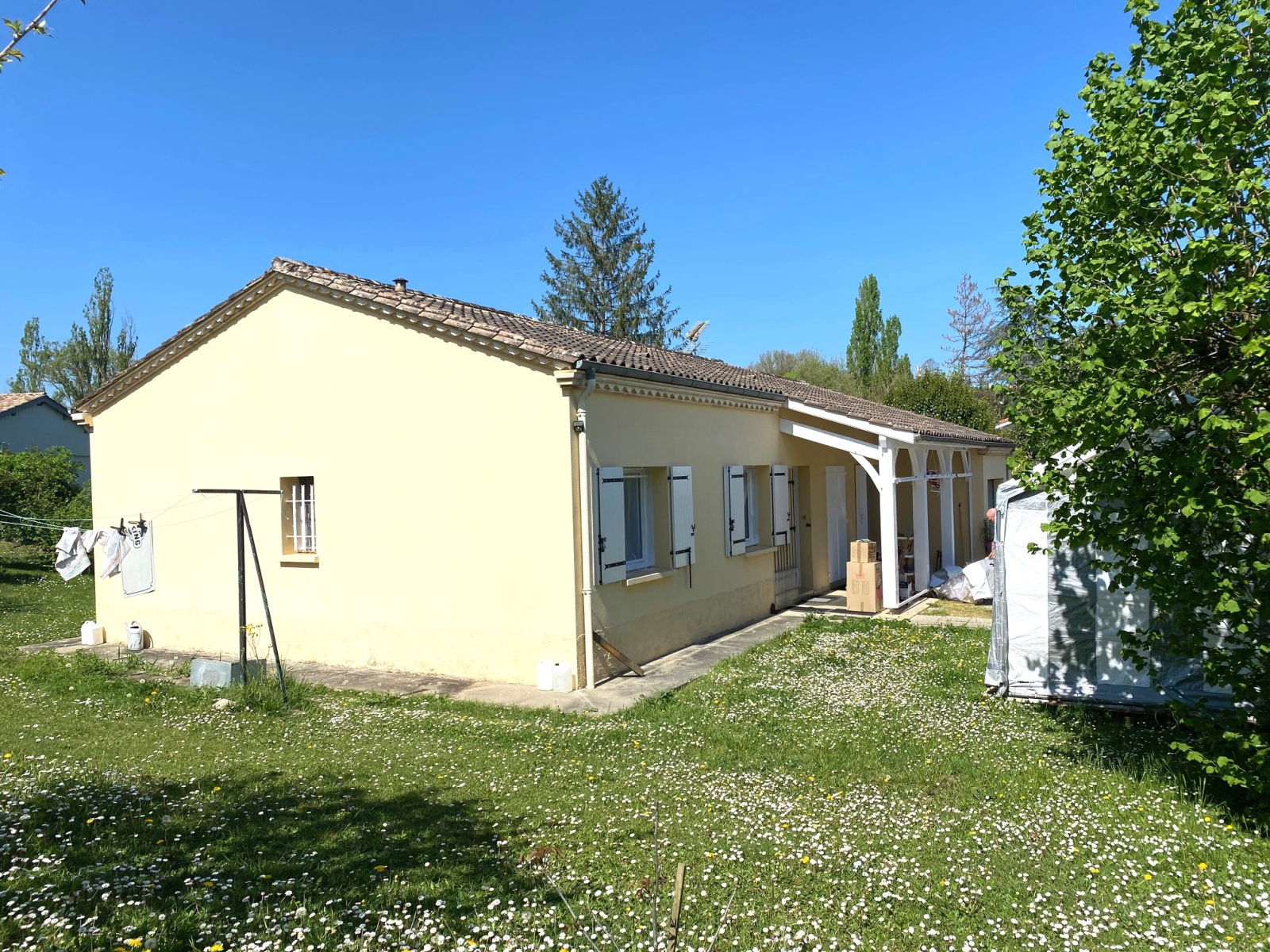 BELLE VILLA DE PLAIN PIED; au coeur d'un village dynamique avec tous les principaux commerces et à 5km du plein centre-ville de MARMANDE, construction de 1994 en très bon état d'entretien comprenant salle de séjour avec cuisine américaine ouverte, 3 chambres, salle de bain, wc, cellier, garage, terrain autour clos...