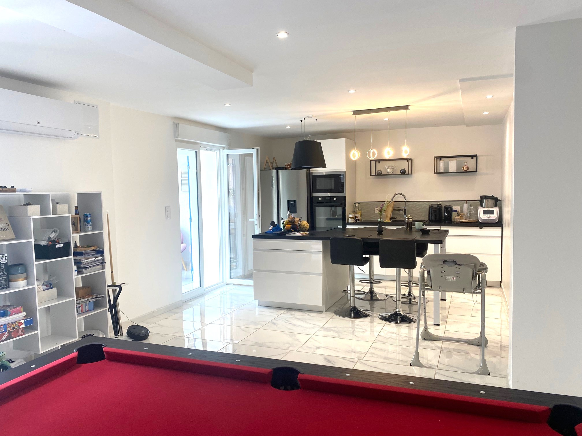 BELLE MAISON RÉNOVÉE AVEC PISCINE; Marmande, principaux commerces, école, collège et lycée accessibles à pied, proximité immédiate centre-ville et gare, construction ancienne entièrement rénovée, parfait état, 130m² habitables environ répartis sur 2 niveaux, entrée, séjour cheminée insert avec cuisine aménagée ouverte 50m² environ, 2 chambres (possibilité 3) dont une suite parentale avec salle d'eau privative, bureau en mezzanine (transformable en 3ème chambre), salle de bains avec wc, 2ème wc, véranda vitrée, buanderie, jardin sur l'arrière avec piscine...COUP DE COEUR ASSURÉ !
