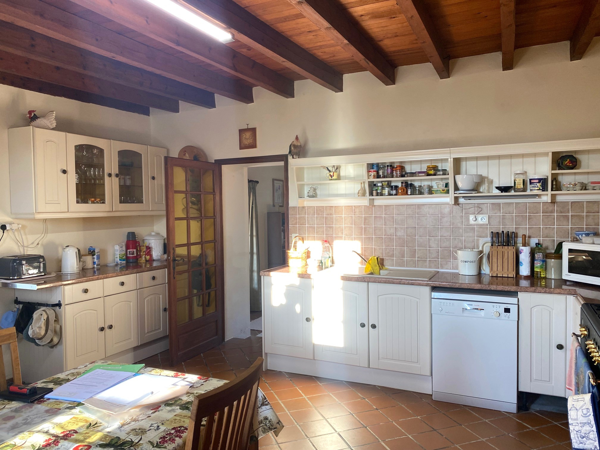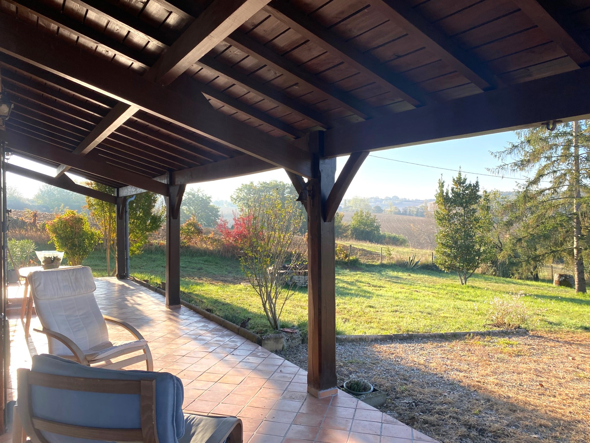 BELLE MAISON DE CAMPAGNE; sur coteau, très belle vue sur la campagne environnante, aucune nuisance, à 5km d'un village avec les principaux commerces et à 9.5km du centre-ville de Marmande, construction ancienne rénovée et en bon état comprenant salle de séjour avec poêle à bois et accés sur terrasse couverte, grande cuisine équipée avec également accés sur terrasse couverte, 4 chambres (2 avec placards), salle de bain + douche, 2 wc, cellier, buanderie, garage, beau terrain clos et arboré 9.486m² avec piscine et pool-house...MAISON COUP DE COEUR !
